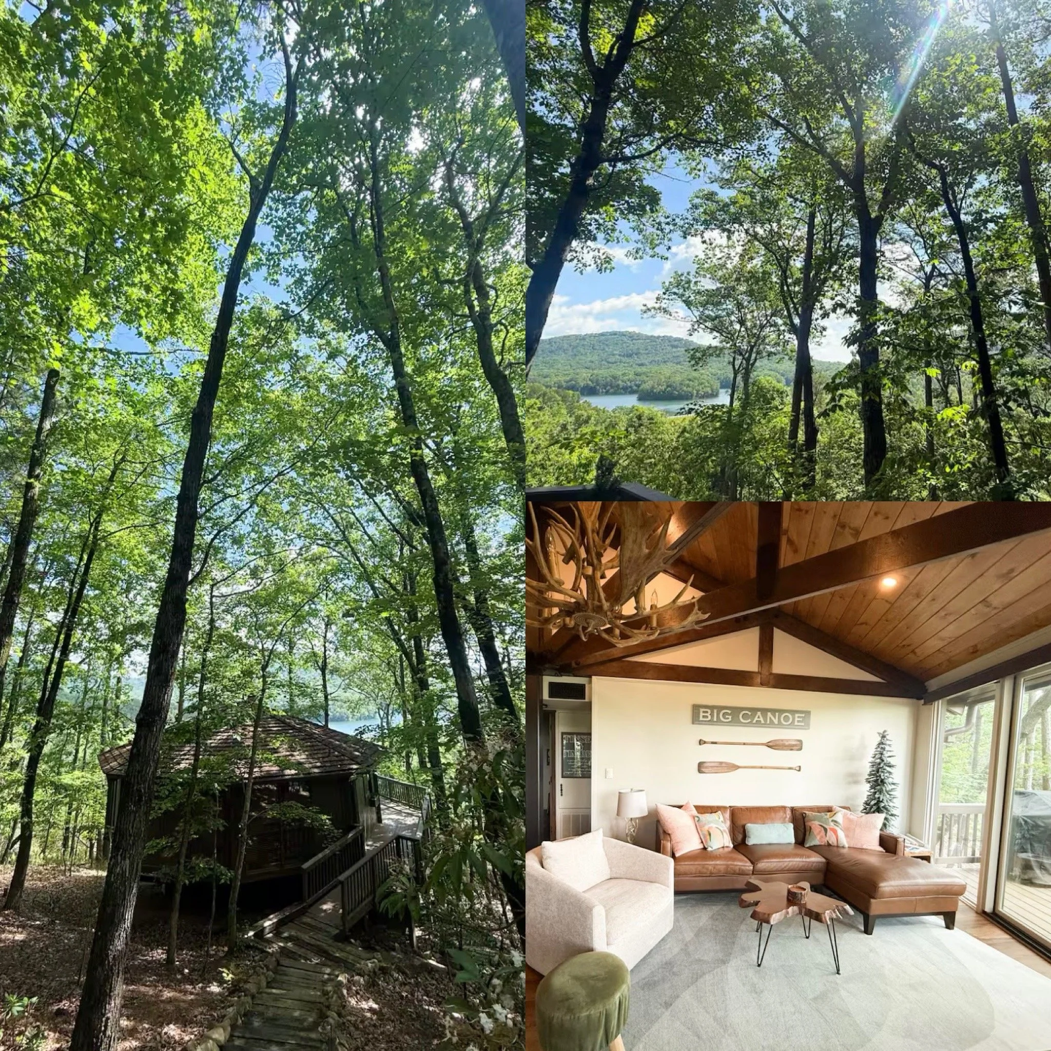 Tinsel & Timber is a fully renovated 2-bed, 2-bath Treetopper Cottage in Big Canoe offering one of the best views of Lake Petit. This beautifully furnished home features vaulted ceilings, luxury finishes, expansive decks, and a flexible lower-level space. My buyers purchased this turnkey, income producing cabin and their mountain retreat is available for renting on Airbnb! It’s located in the gated mountain community of Big Canoe with access to exclusive amenities including a Beach Club, boating, a rock slide, jeep trail, golf, restaurants and more.